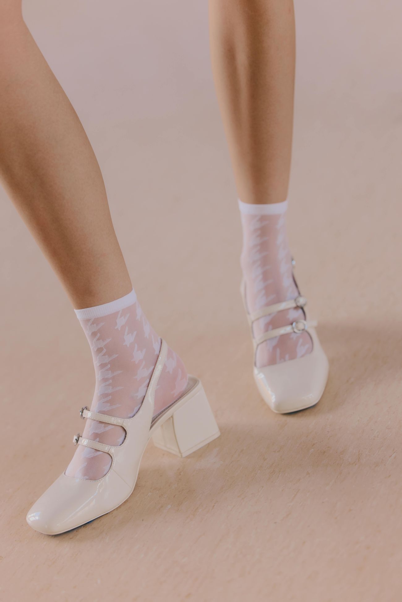 Pepitka to nieco odważniejsza odmiana dyskretnej klasyki, to wyraźny wzór z lekkim pazurem. Te cieniutkie skarpetki dodadzą stylizacji charakteru.